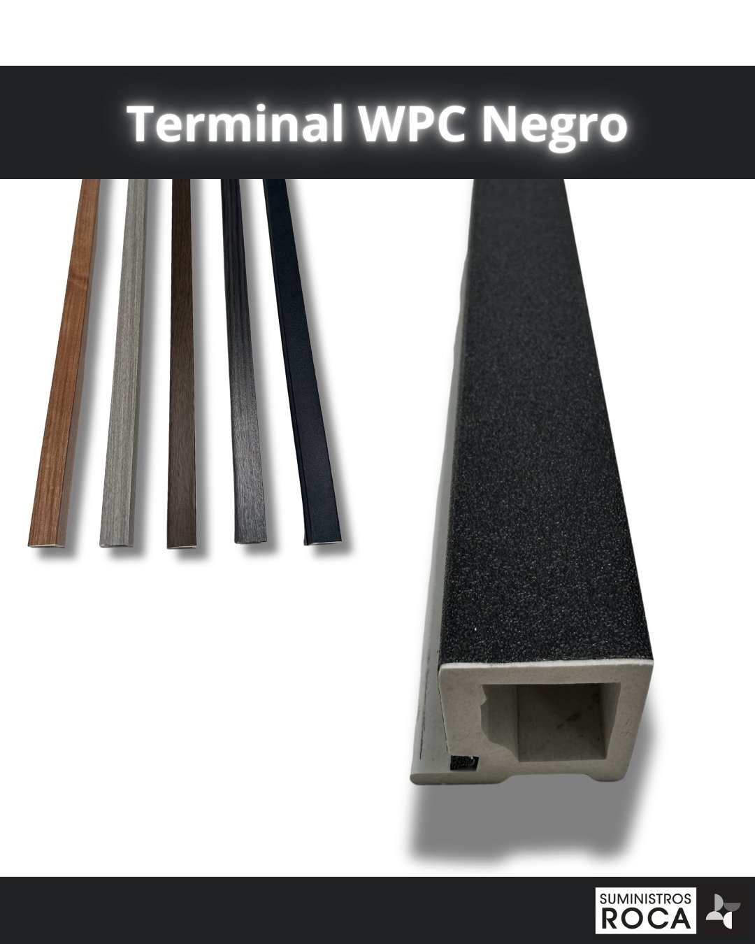 El Terminal para WPC es la pieza de cierre diseñada para completar la instalación de los paneles o tablas de revestimiento decorativo WPC, garantizando un acabado continuo, uniforme y de alta calidad.