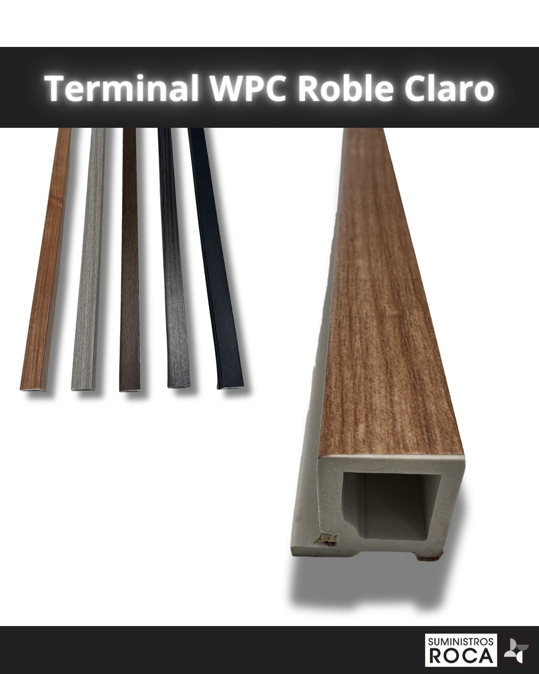 El Terminal para WPC es la pieza de cierre diseñada para completar la instalación de los paneles o tablas de revestimiento decorativo WPC, garantizando un acabado continuo, uniforme y de alta calidad.